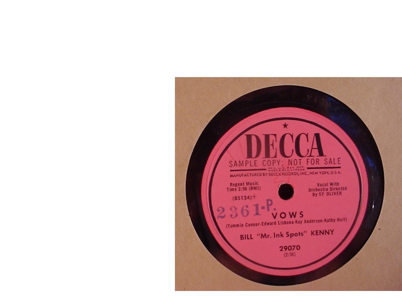 Bill Kenny - Rare Bill "Mr. Ink Spots" Kenny Radio Station Promo Issue 10 Inch 78 rpm - Vows ...