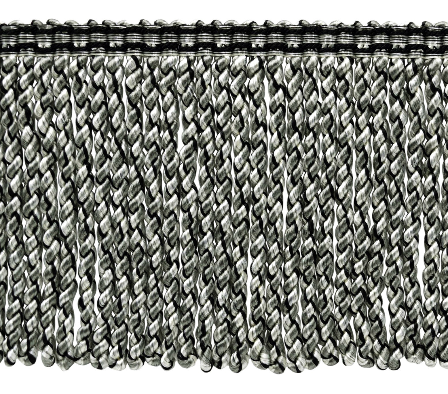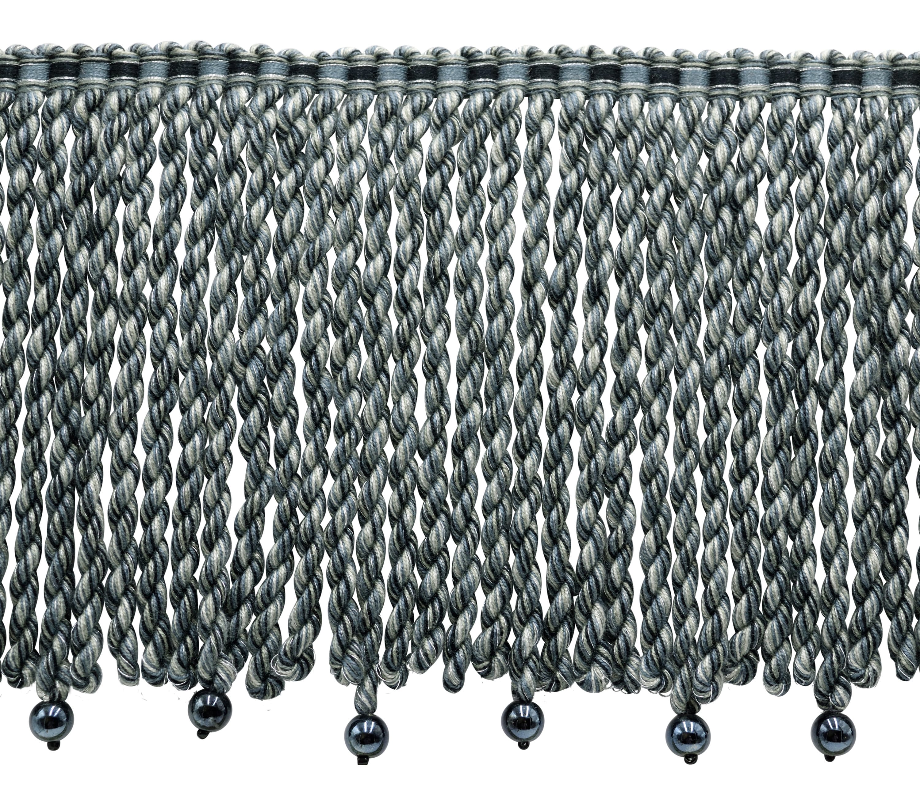 6" (15cm) long Bullion Fringe Trim with Woven Header, Anchor Grey Multicolor #VL10 (Light Grey, Slate Blue, Pure Black) 5 Yards (15 ft/4.5m)